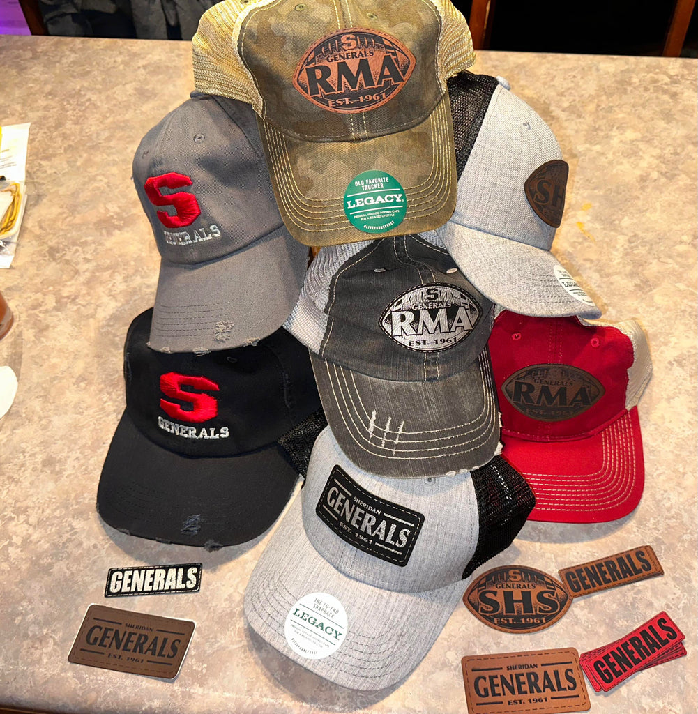 Sheridan Generals Leatherette Patched hats. Check the pictures to see what patch you want on your hat. Please leave a detailed comment if you arent for sure you chose the correct one.